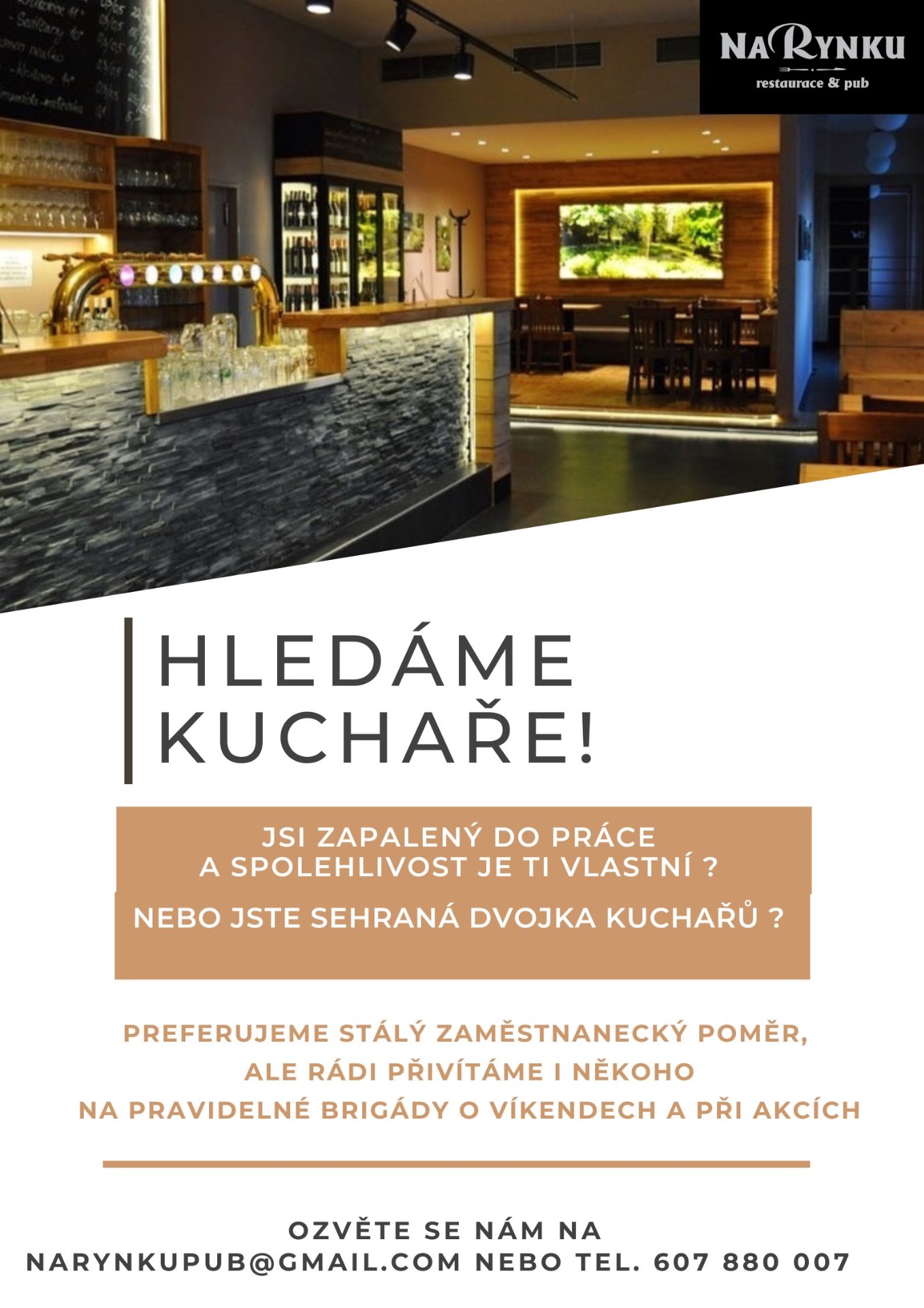 Trochu upřímnosti nakonec, máme kluky jen s dvěma rukama a nohama, potřebujeme posílit partu, protože to přestáváme stíhat a chceme mít i nadále spokojené hosty a nesedřít nám kluky... Rozložit síly nám přijde výhoda pro všechny strany...