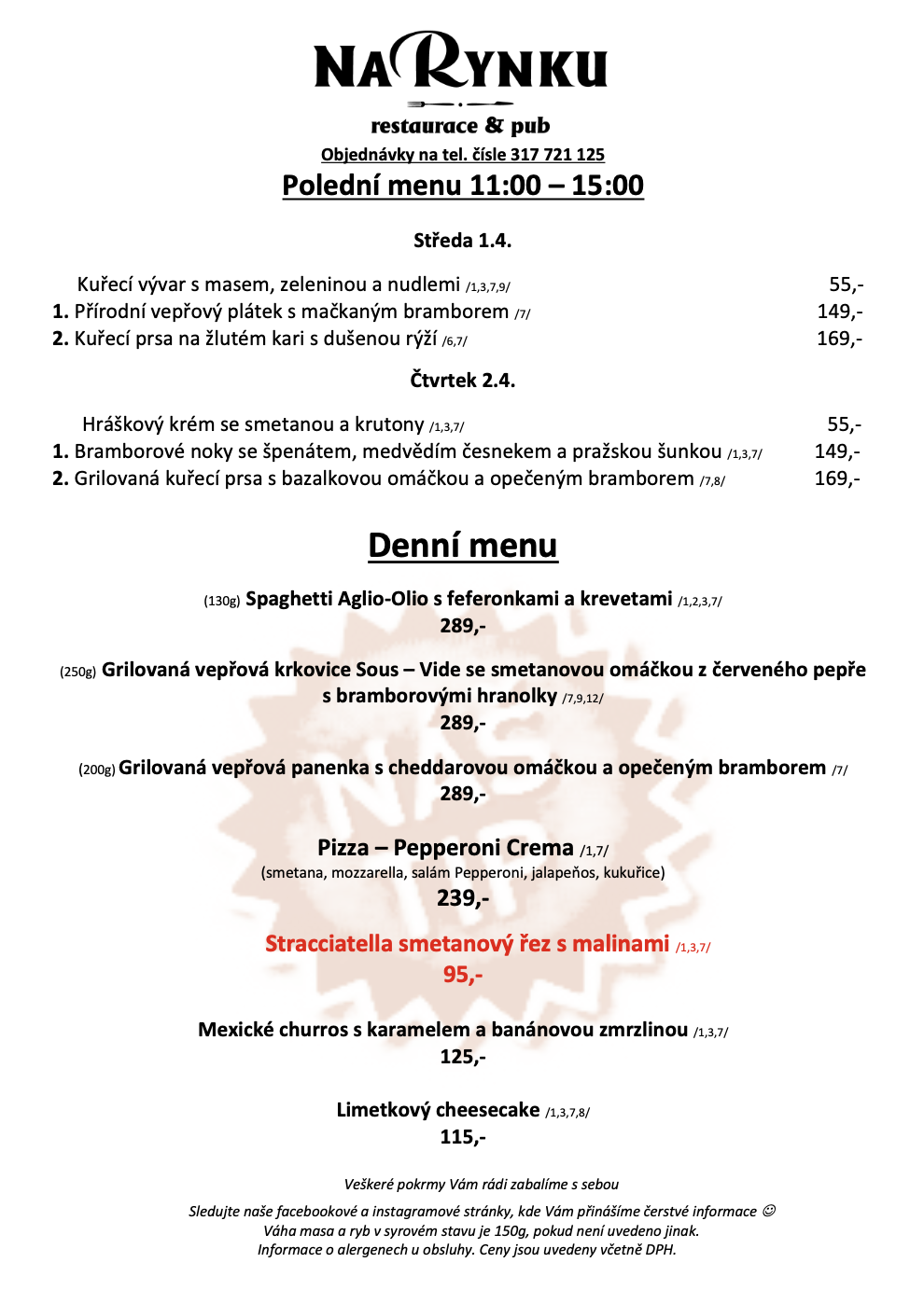 objednávky a rezervace na tel.: 317 721 125